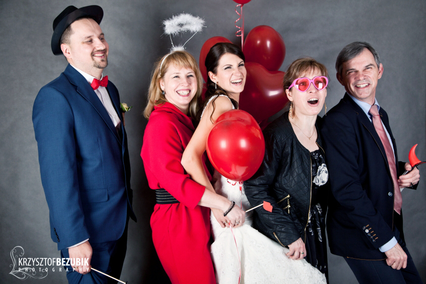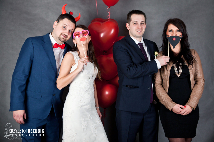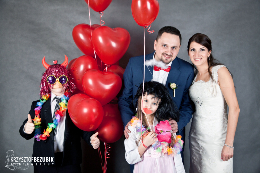 wykorzystując różnego rodzaju gadżety. Poniżej szalona budka na ślubie Kasi i Marcina.